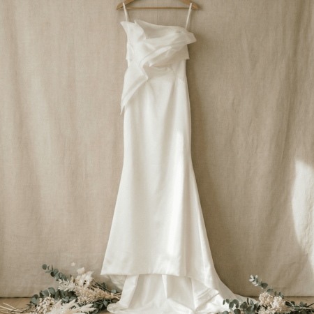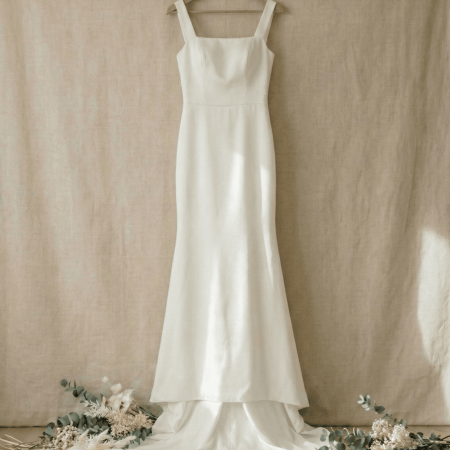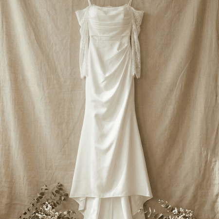 一字領長袖緞面魚尾裙