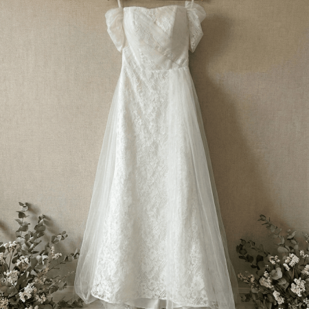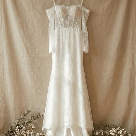 落肩蕾絲紗魚尾裙