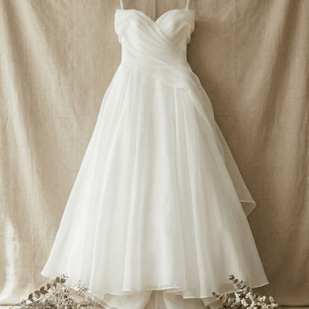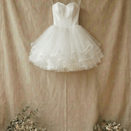 抓摺卡肩歐根紗微澎紗裙
