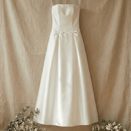 平口緞面綁口袋款長裙
