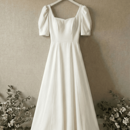 短袖緞面Aline長裙